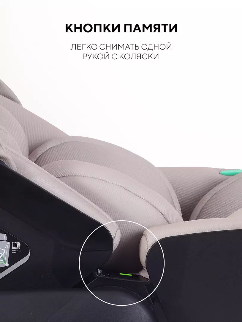 автолюльку можно закрепить на базе коляски* с помощью адаптеров (приобретаются отдельно). Аксессуар легко и быстро снимается одной рукой с базы коляски благодаря кнопкам памяти.