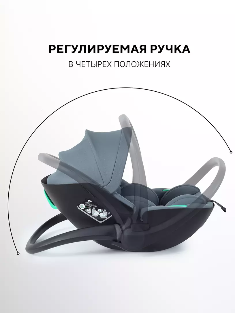 удобная ручка-переноска регулируется в 4 положениях. В нижнем положении ручка выступает стопором, предотвращающим укачивание.