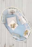 Комплект в кроватку Пухлики 18 предметов, с балдахином, с принтом (Маленький пилот - голубой)