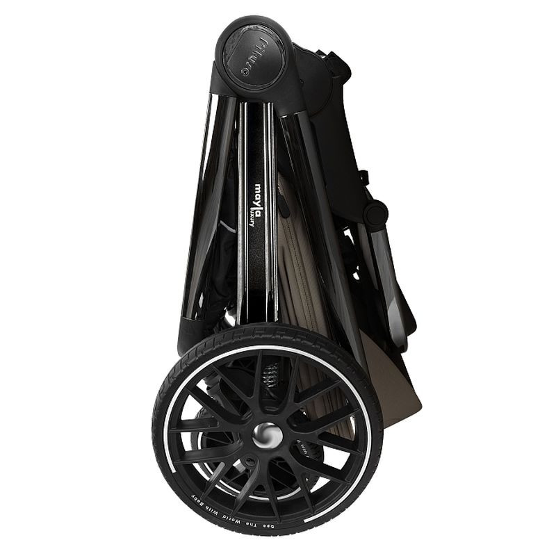 Коляска Pituso Mayla Luxury 2 в 1, её модули, крепко стоят на красивой, крепкой, устойчивой раме из алюминия. Тип сложения «книжка», складывается вместе с прогулочным блоком.