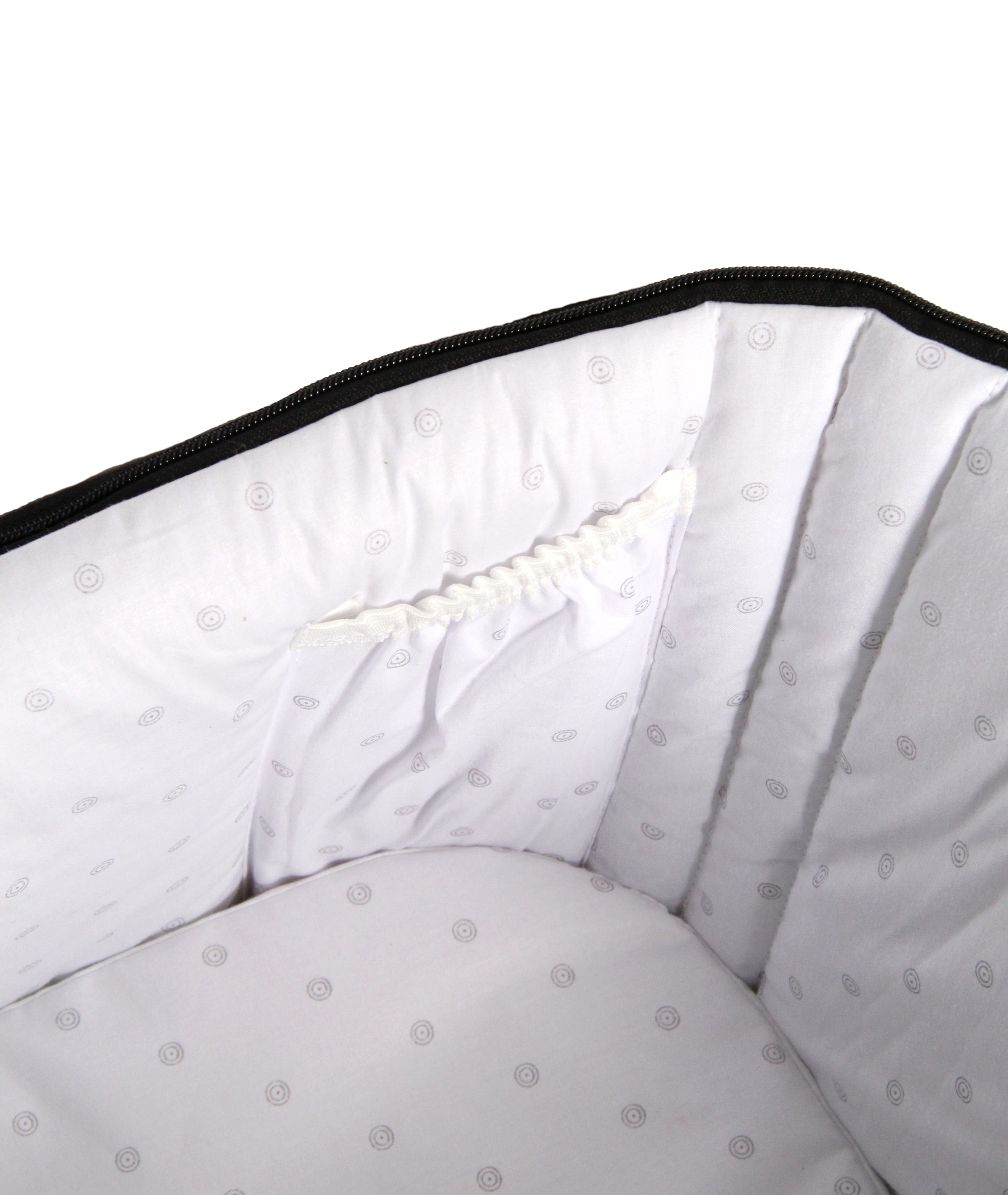 Для зрительного контакта с малышом производитель предусмотрел смотровое окошко в бортике накидки. Внутренняя отделка на молнии, с дополнительным карманчиком выполнена из премиального 100% хлопка. При необходимости ее можно снять и постирать. Люлька имеет многоступенчатую внешнюю регулировку вентиляции и подъёма изголовья, встроенные в дно корпуса.