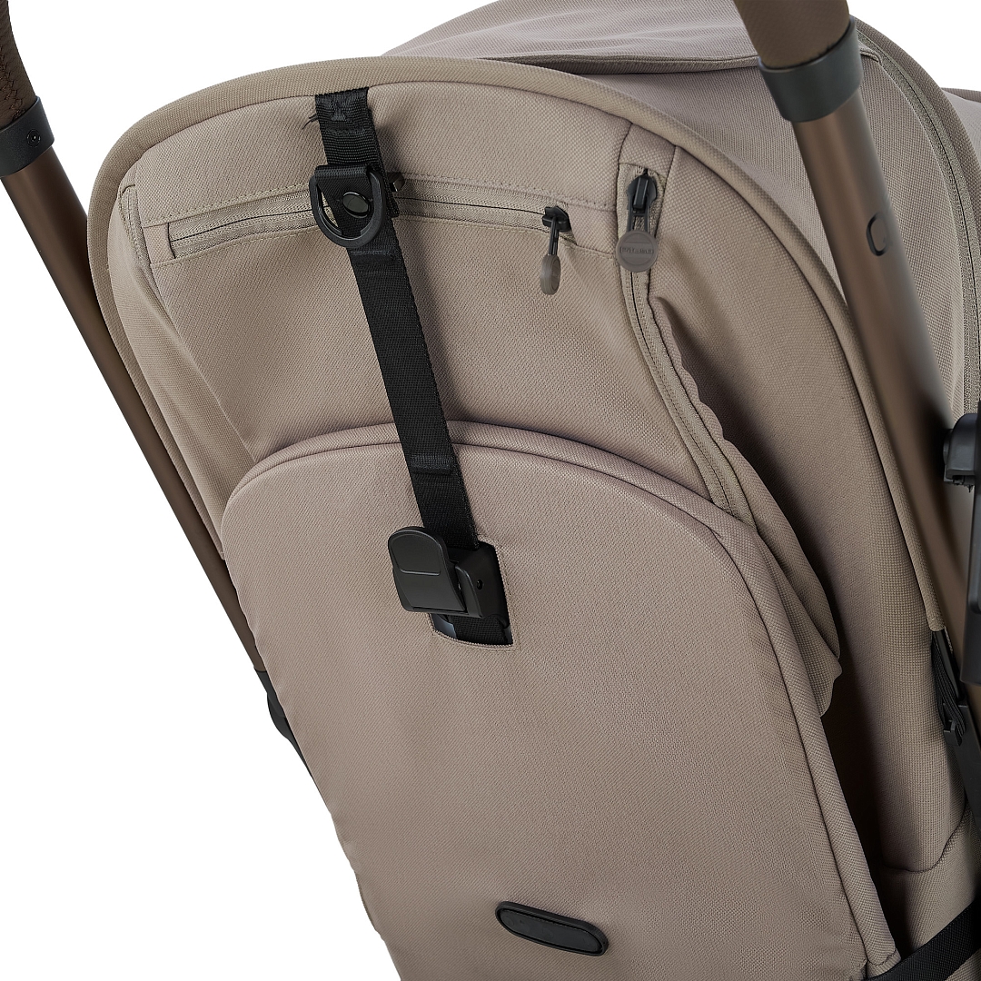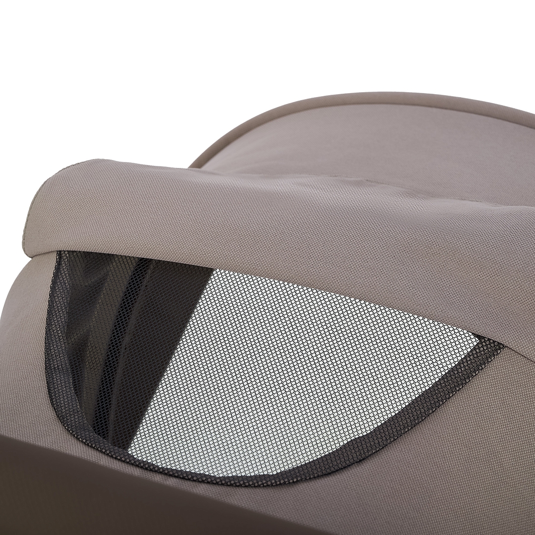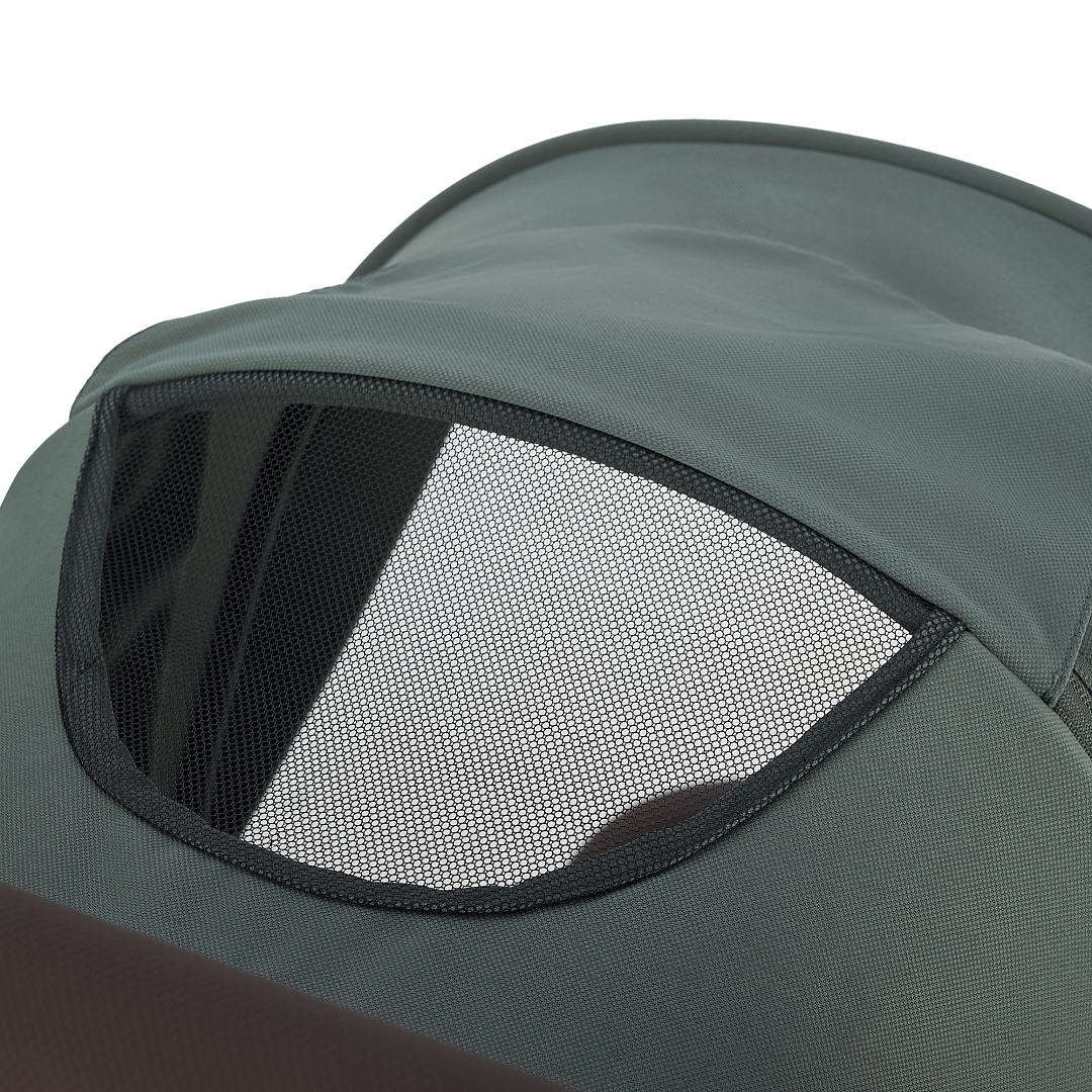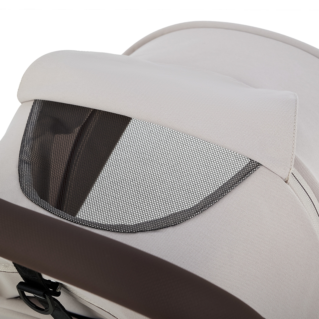 • Вентиляционная окошко в капюшоне. Вставка из дышащей сетки на задней стенке обеспечивает вентиляцию и комфортные прогулки в жаркие дни. Вентиляционное окошко легко открывается с помощью двух боковых молний и фиксируется с использованием специального крепления.