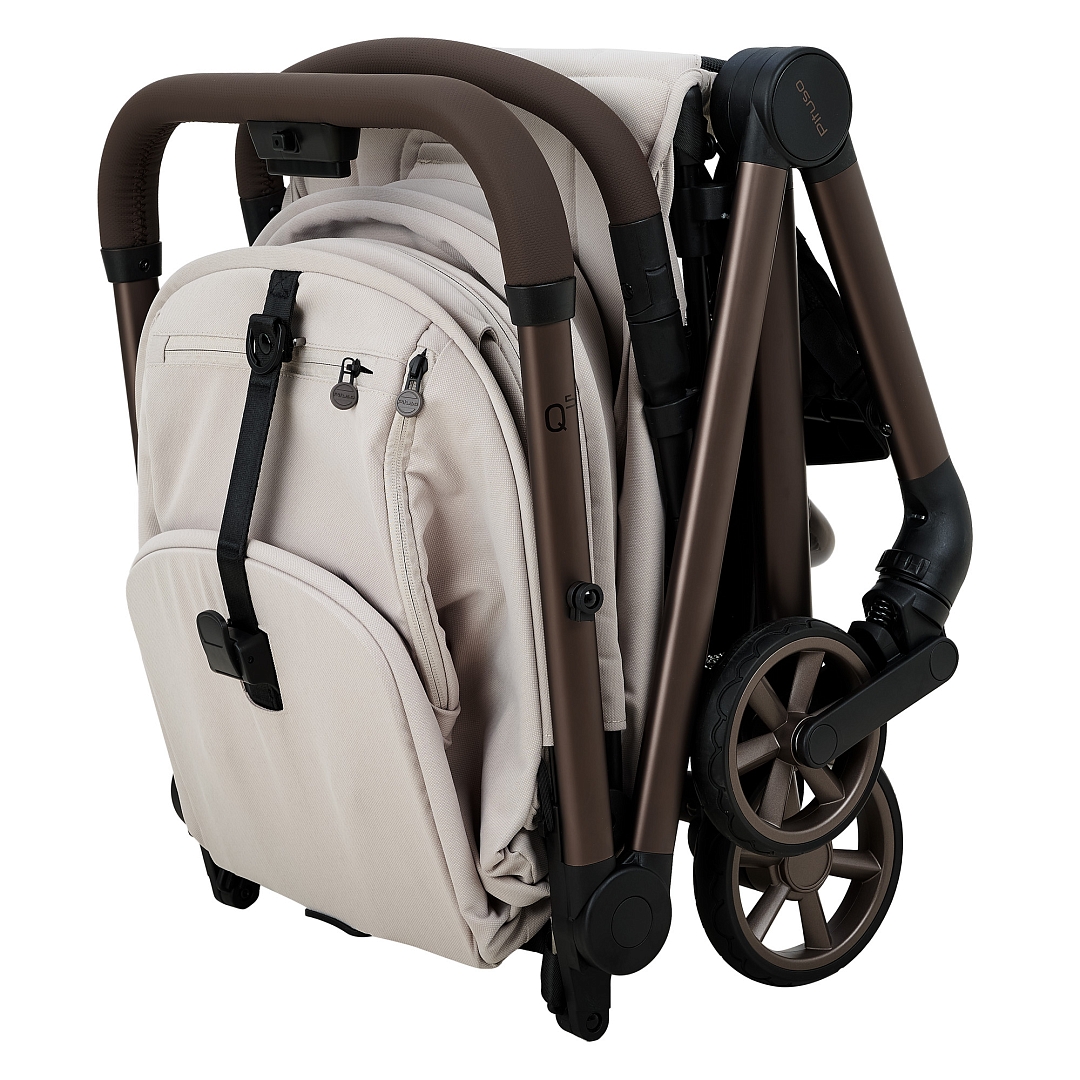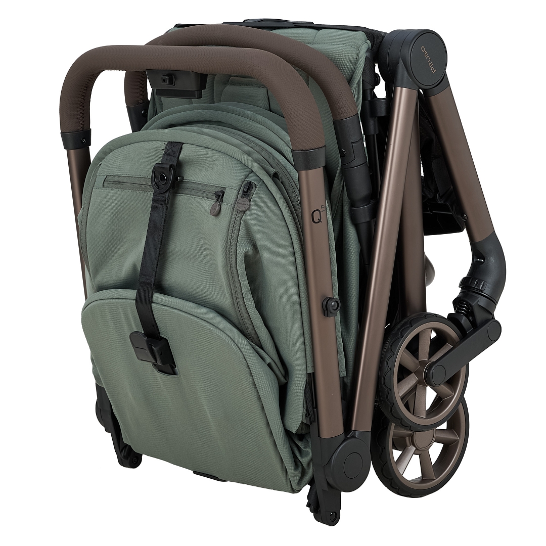 • Ультра компактная. Благодаря своему компактному размеру, коляска Q5 удобно транспортируется и в сложенном виде занимает мало места. Складывается одной рукой, в вертикальном положении стоит без опоры, сохраняя чистоту текстиля и ручки. Складной механизм по типу «книжка». Для переноски коляски предусмотрен удобный плечевой ремень.