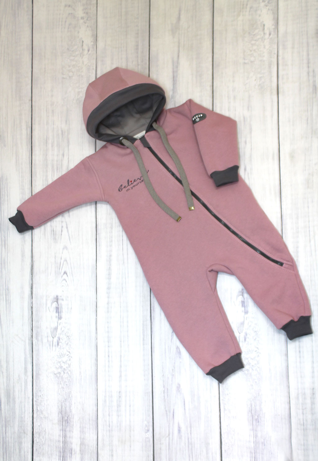Комбинезон детский Believe 86-92см, 98-104см теплый футер (рост86-92 Розовая пудра(Пыльная роза))