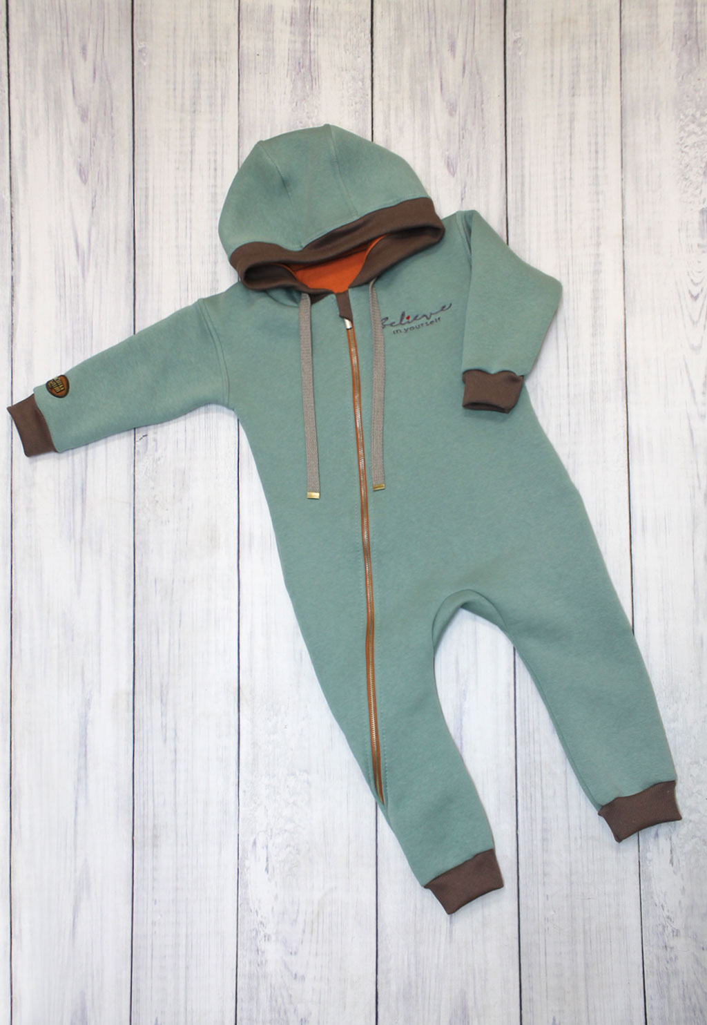 Комбинезон детский Believe 86-92см, 98-104см  теплый футер (рост86-92 Оливковый(Изумруд))