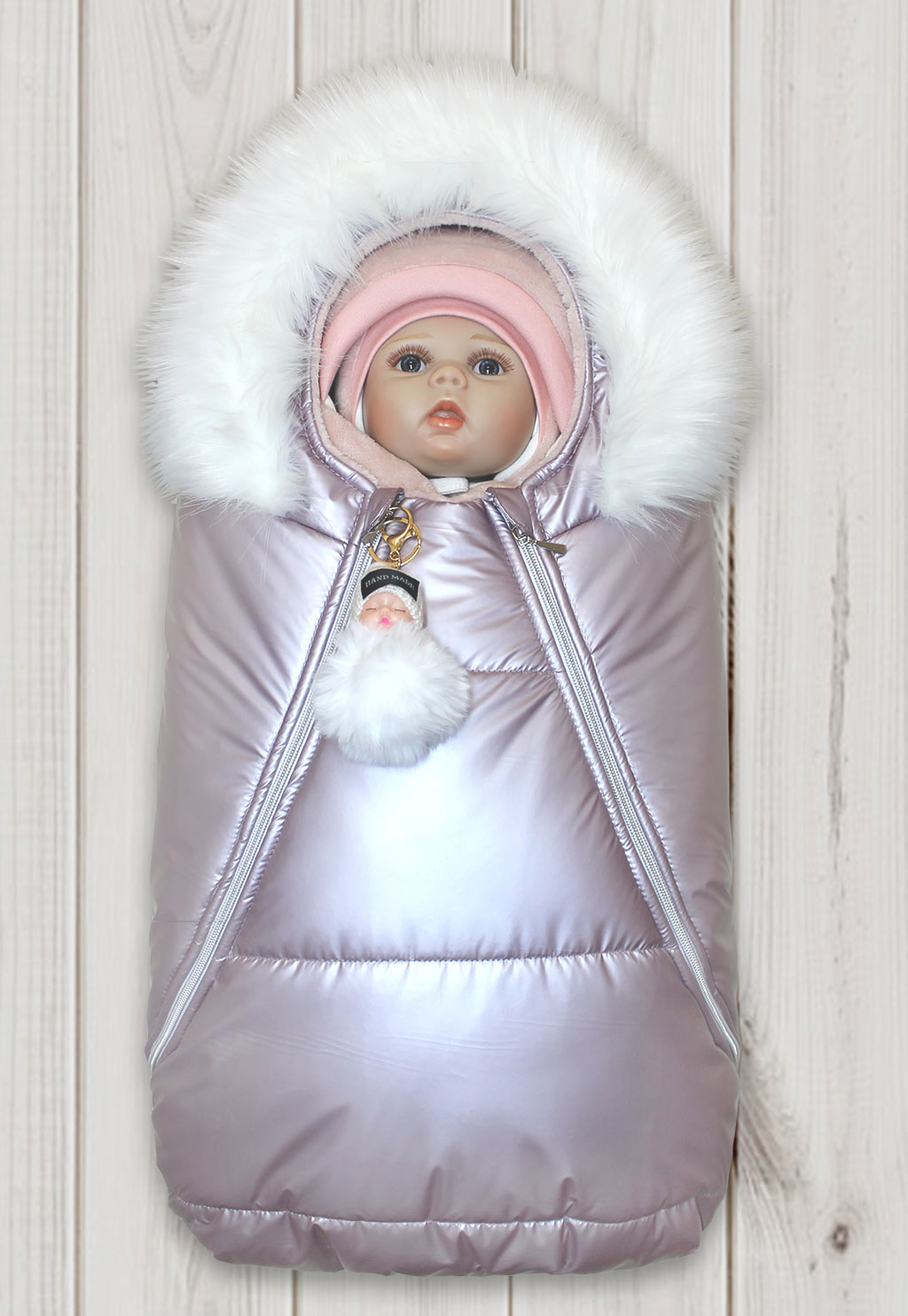 - конверт на синтепоне, с меховой отделкой (р-р 68-74см);