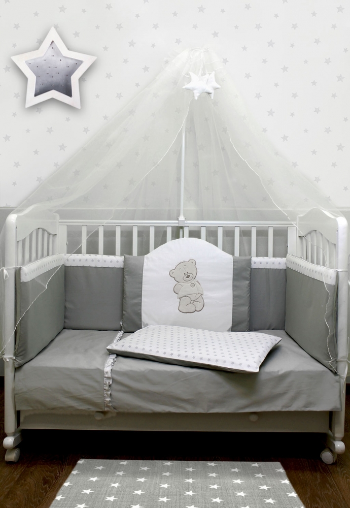 Комплект в кроватку Моя радость 7 предметов с балдахином (Серый)