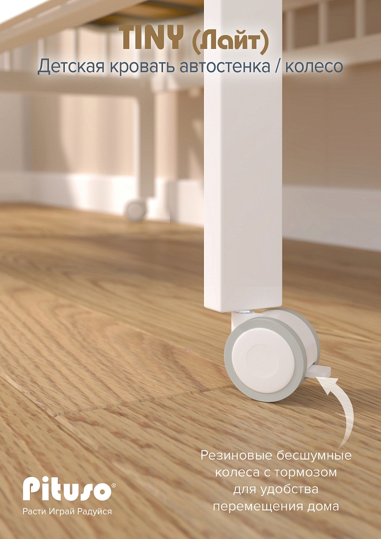 Резиновые бесшумные колесики с тормозом (на всех 4х колесах) для удобства перемещения по вашему дому.