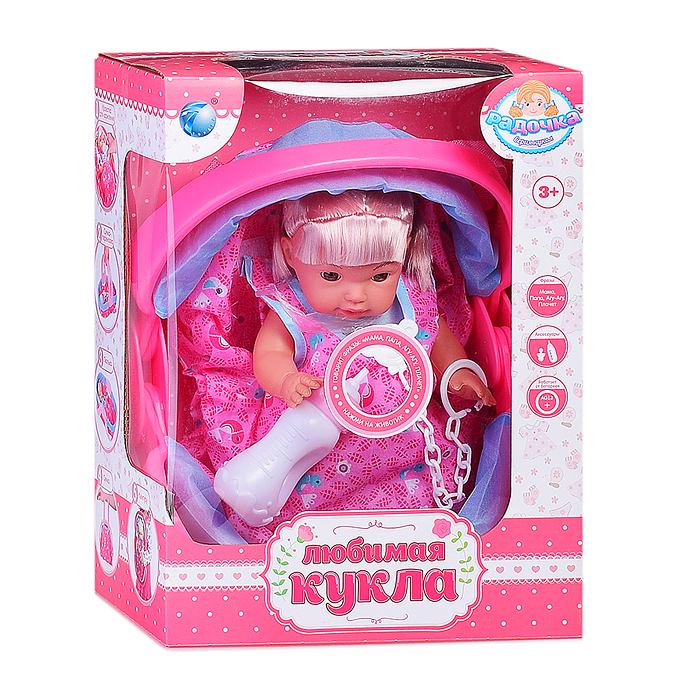 - при нажатии на звуковой модуль произносит: "Мама", "Папа", "Агу-агу", плачет.