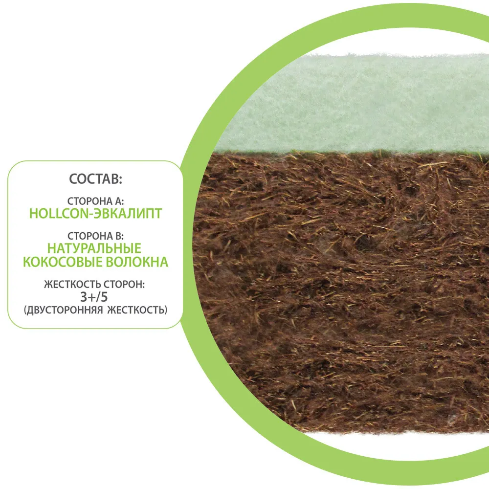 Ортопедический матрас для новорождённых на основе холкон-эвкалипта и кокосовой койры. Специальный чехол для лучшей циркуляции воздуха и массажного эффекта.