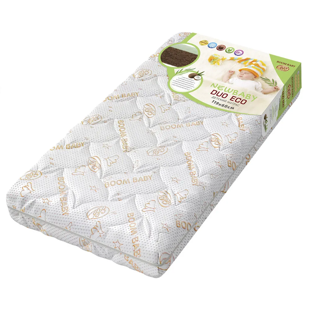 Двусторонний матрас Boom Baby NEWBABY DUO ECO в кроватку поможет спине малыша правильно сформироваться, подходит детям, отказывающимся спать на жёстком основании.