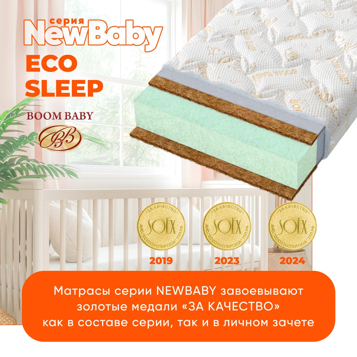 Матрас NewBaby «Eco Sleep» обладает прекрасным ортопедическим эффектом и равномерной жесткостью с обеих сторон. Высокая жесткость кокосовых волокон гарантирует ровную поверхность, способствуя правильному формированию осанки и укреплению костных и мышечных тканей.