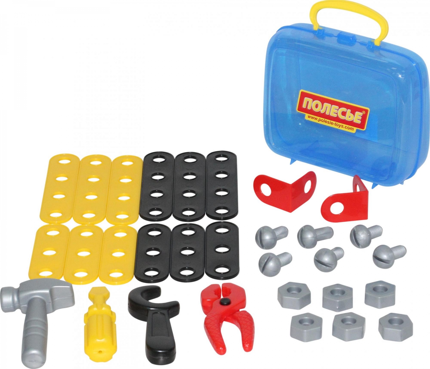 Набор для мальчиков, состоящий из отвертки, гаечного ключа, пассатижей, молотка, а также соединительных пластин, уголков, винтов и гаек. Набор отлично подойдет для первого знакомства мальчика со слесарным инструментом, его назначением, принципами работы. Укомплектован в чемоданчик, который упрощает перемещение игрушки.