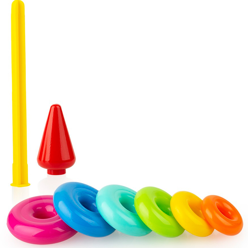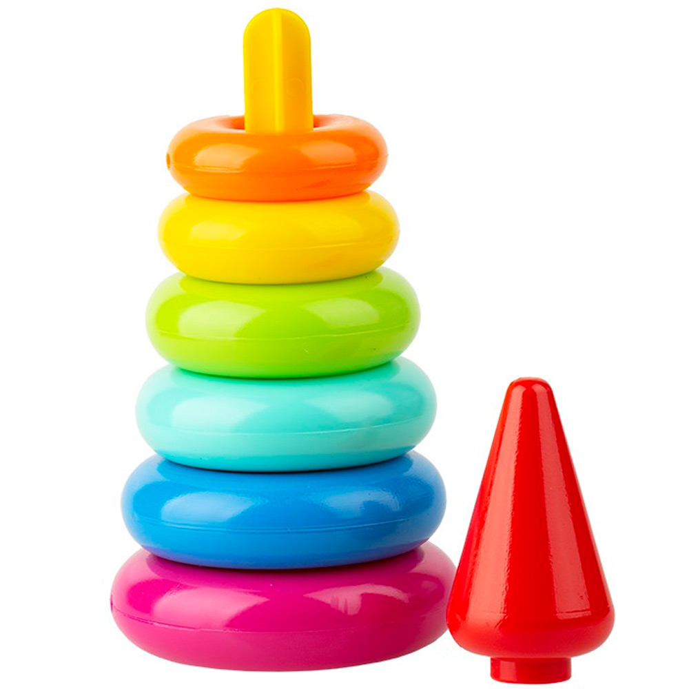 Задача малыша — собрать кольца в правильной последовательности (от самого большого до самого маленького).