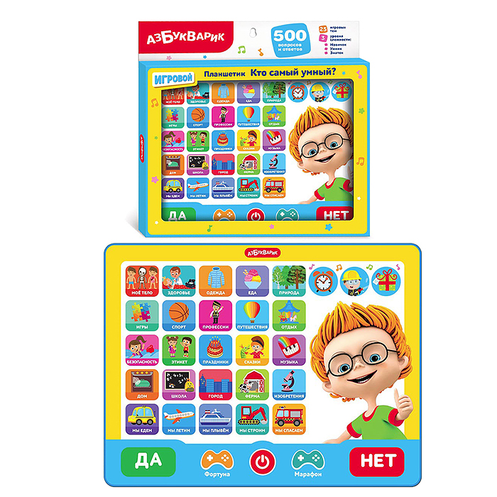 - «Фортуна» (Выбирай темы -отвечай на вопросы.Для ответа нажимай на кнопки ДА И НЕТ. Отвечая на вопросы с помощью кнопок «Да» и «Нет», ребенок узнает много интересного о человеке и его здоровье, о природе и безопасности, о профессиях, машинах, изобретениях и т.д.
