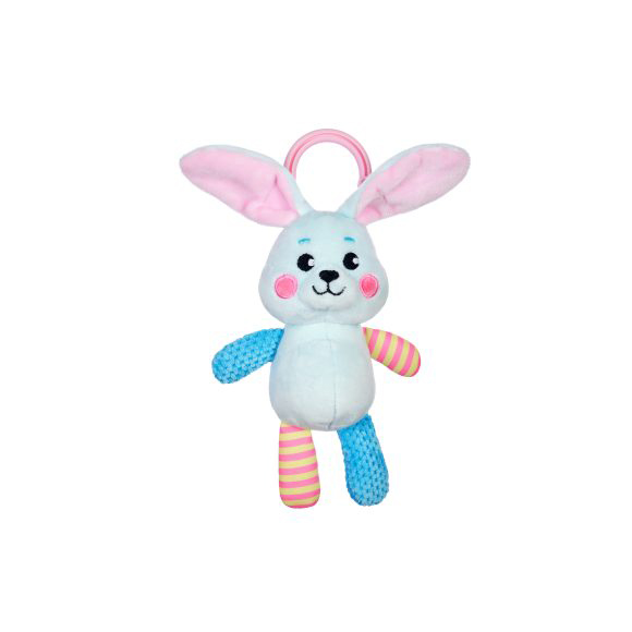 Подвеска Зайка - это яркая и интересная мягкая игрушка, которая привлечет внимание каждого малыша. Очаровательный зайка выполнен из приятного на ощупь материала. Игрушка оснащена специальным кольцом, за которое ее можно подвесить к кроватке или коляске ребенка. К тому же игрушка способна производить вибрацию, что не только развлечет ребенка, но и позволит детям получить новый тактильный опыт.