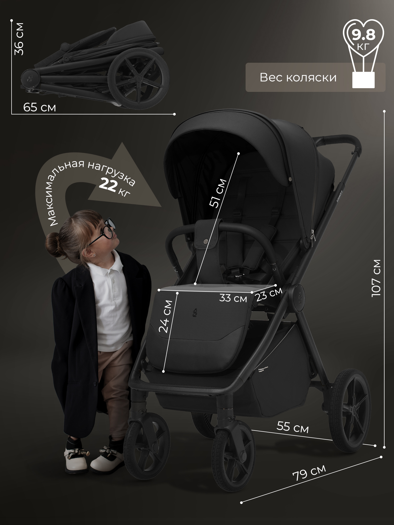 Вес коляски: 9,8 кг