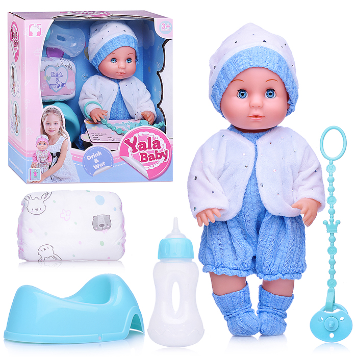 • В комплекте: бутылочка, горшок, соска, памперс.