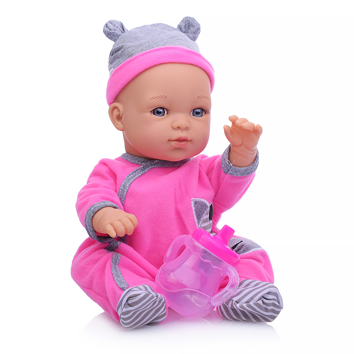 Милый пупс малышка обязательно станет постоянным участником сюжетно-ролевых игр ребёнка. Размер пупса - 30 см. Туловище игрушки пластмассовое; голова, ручки и ножки - из мягкого ПВХ. Части тела подвижные. Глазки не закрываются. Элементы одежды легко снять и одеть. Игрушка озвучена. Воспроизводит звуки: детский плач, детский смех и хохот, смешные звуки, похожие на речь. Пупсика можно купать, переодевать, брать с собой на прогулку. В комплекте аксессуары: бутылочка, рюкзак-кенгуру. Такая комплектация разнообразит игру и сделает её ещё интереснее и реалистичнее.