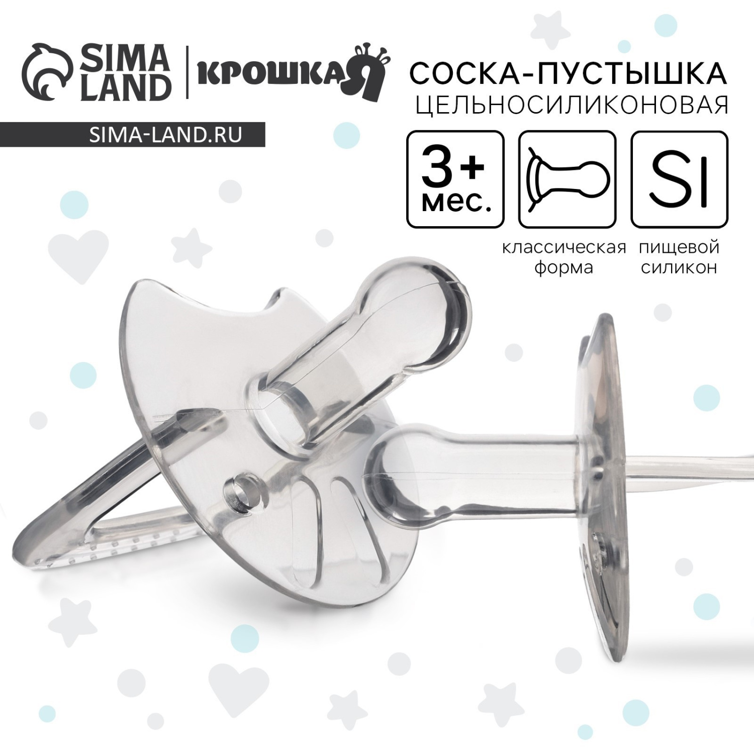 Цельносиликоновая пустышка предназначена для детей с рождения до полугода. Принадлежность не содержит пластмассовых элементов. Изделие выполнено из гипоаллергенного медицинского материала и безопасно для здоровья ребёнка.