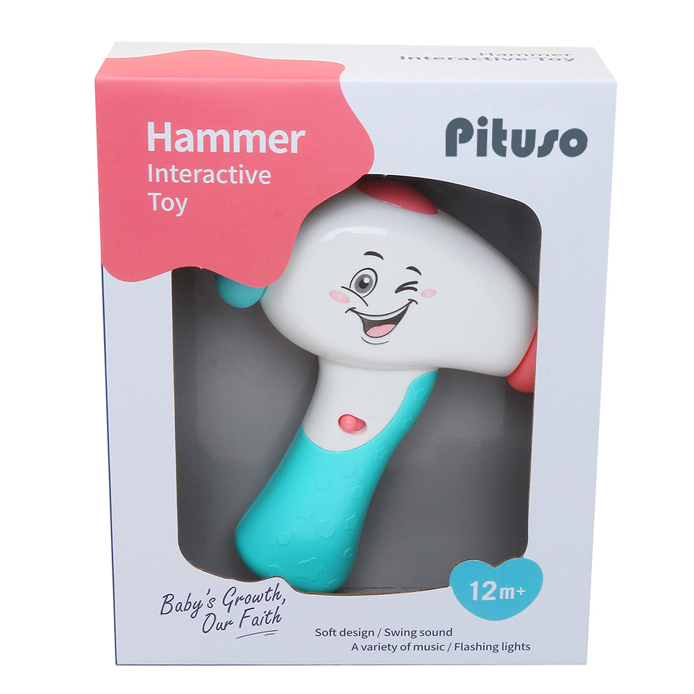 Развивающая игрушка исполнена в виде удобного молоточка с мягким наконечником и удобной ручкой.
