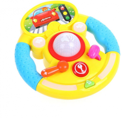 Яркий музыкальный руль для самых маленьких водителей! Подвижные элементы, реалистичные звуки машины, яркие огоньки поворотников, большая светящаяся кнопка сигнала, радио с любимыми песенками и мелодиями - всё это сделает игру очень интересной и увлекательной.