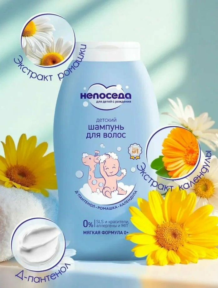 Мягкий шампунь с календулой и ромашкой Непоседа создан специально для ухода за первыми локонами и нежной кожей головы новорожденных. Благодаря Д-пантенолу и комплексу натуральных экстрактов ромашки и календулы, мягкий шампунь не только бережно очищает нежные волосы и кожу, но так же обеспечивает увлажнение и питание кожи и волос, способствует снятию сухости и раздражений. Состав разработан с учетом сведения к минимуму рисков аллергических реакций при индивидуальной непереносимости ингредиентов. Специальные особенности: Не содержит SLS, парабены, метилы, красители и аллергены. Результат: волосы и кожа головы очищены, нет сухости и покраснений.