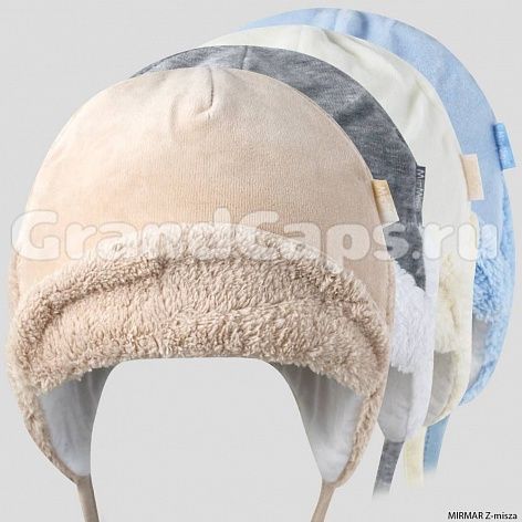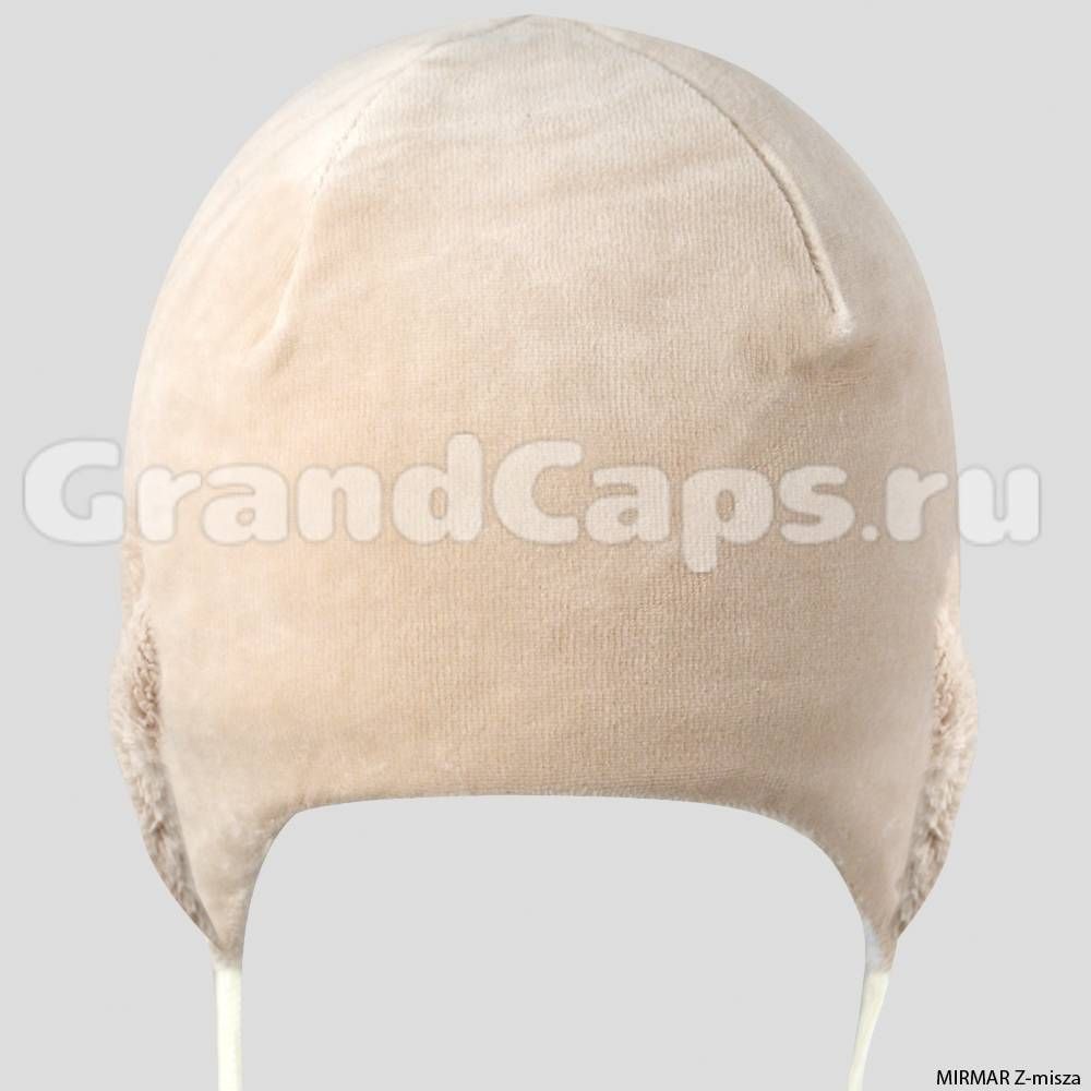 Шапка плюшевая на мальчика с козырьком из ворсистого плюша, на завязках.