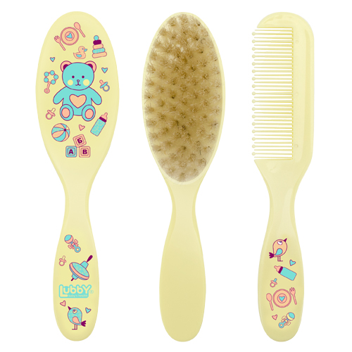 Набор детская расческа и щетка "Малыши и малышки" разработан специально для нежного ухода за волосами малыша. Размер и форма расчески и щетки специально подобраны для комфортного размещения в руке и легкого расчесывания волос. Мягкая натуральная щетина щетки бережно расчесывает, не повреждая нежную кожу малыша.