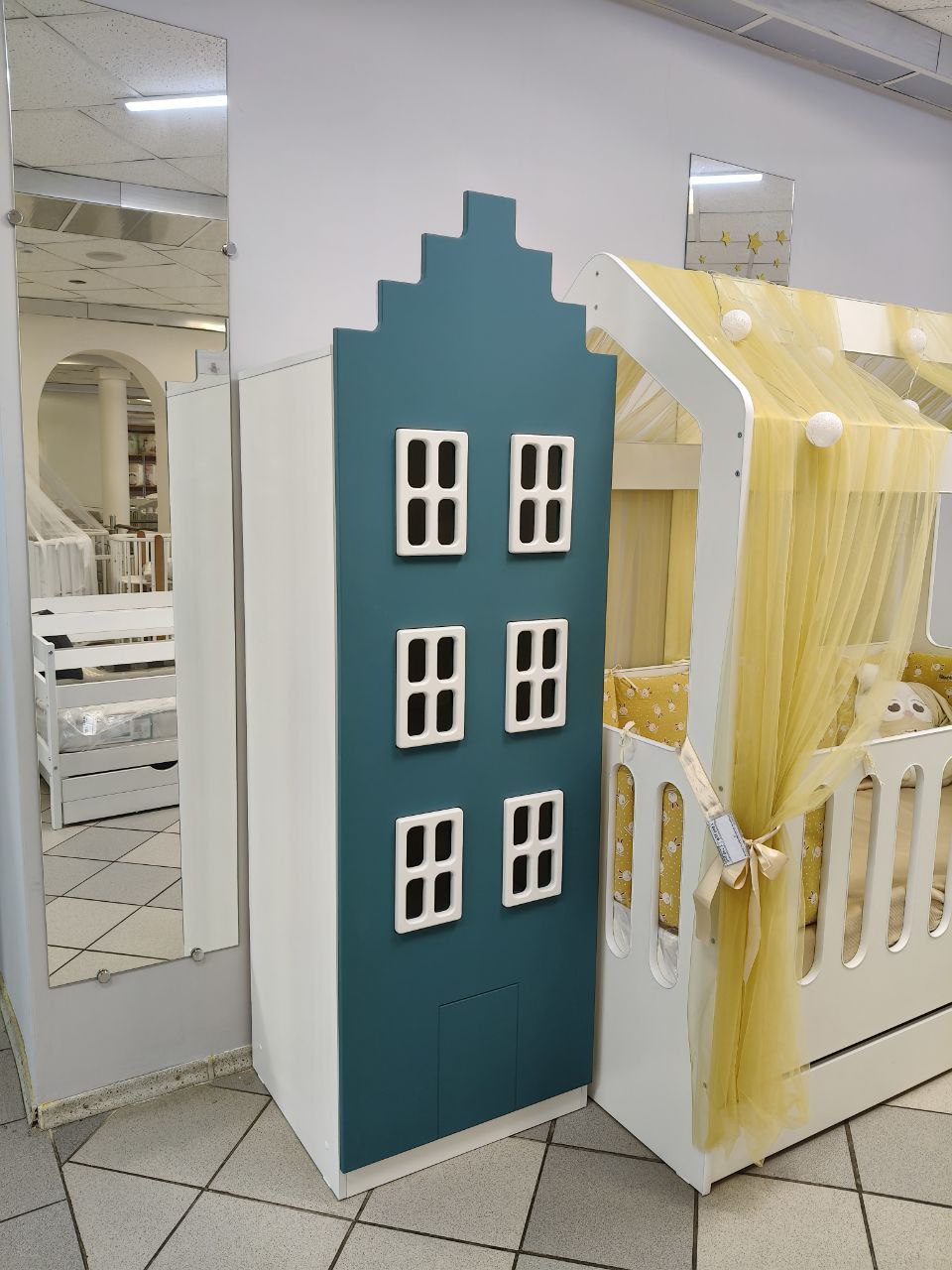 Шкаф Голландский 600 (Белый-фасад МДФ Аквамарин)