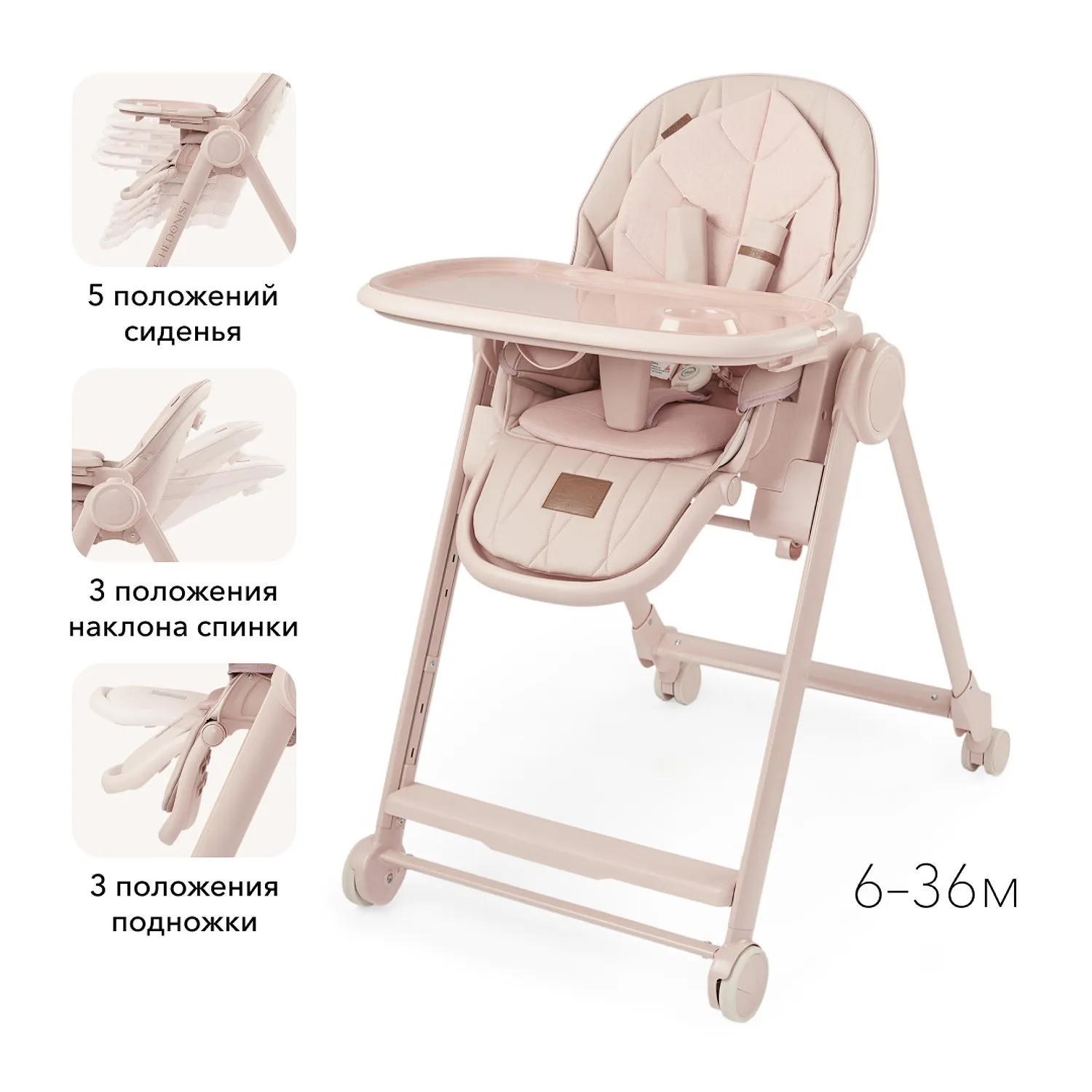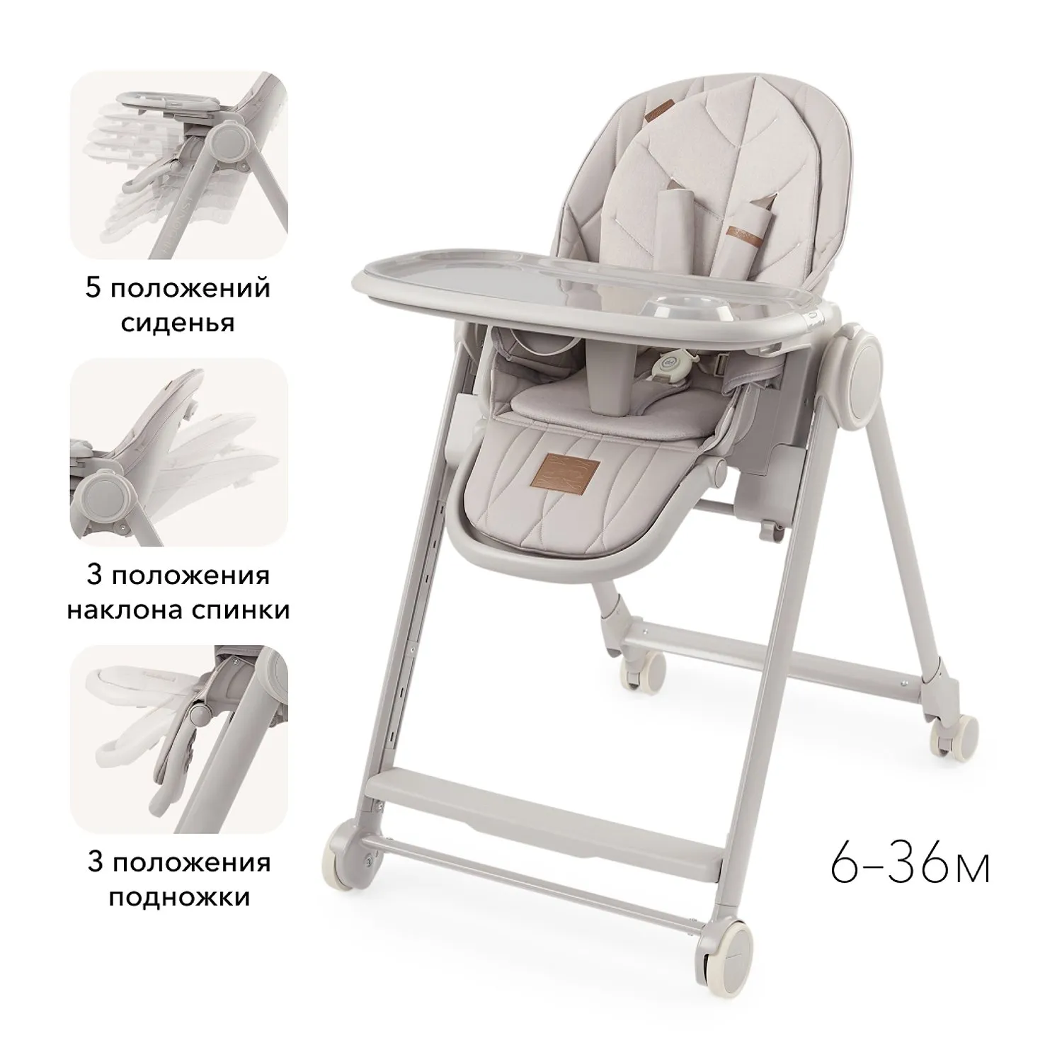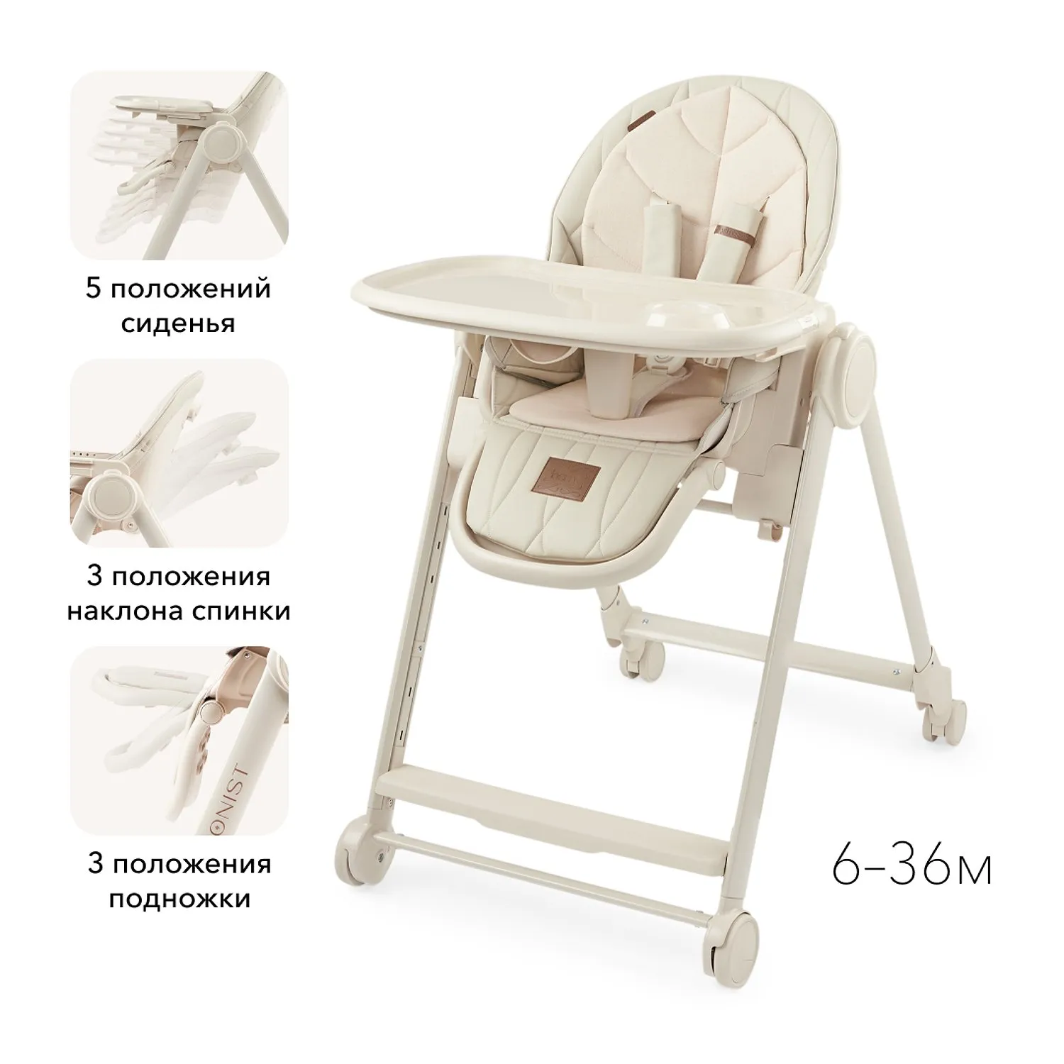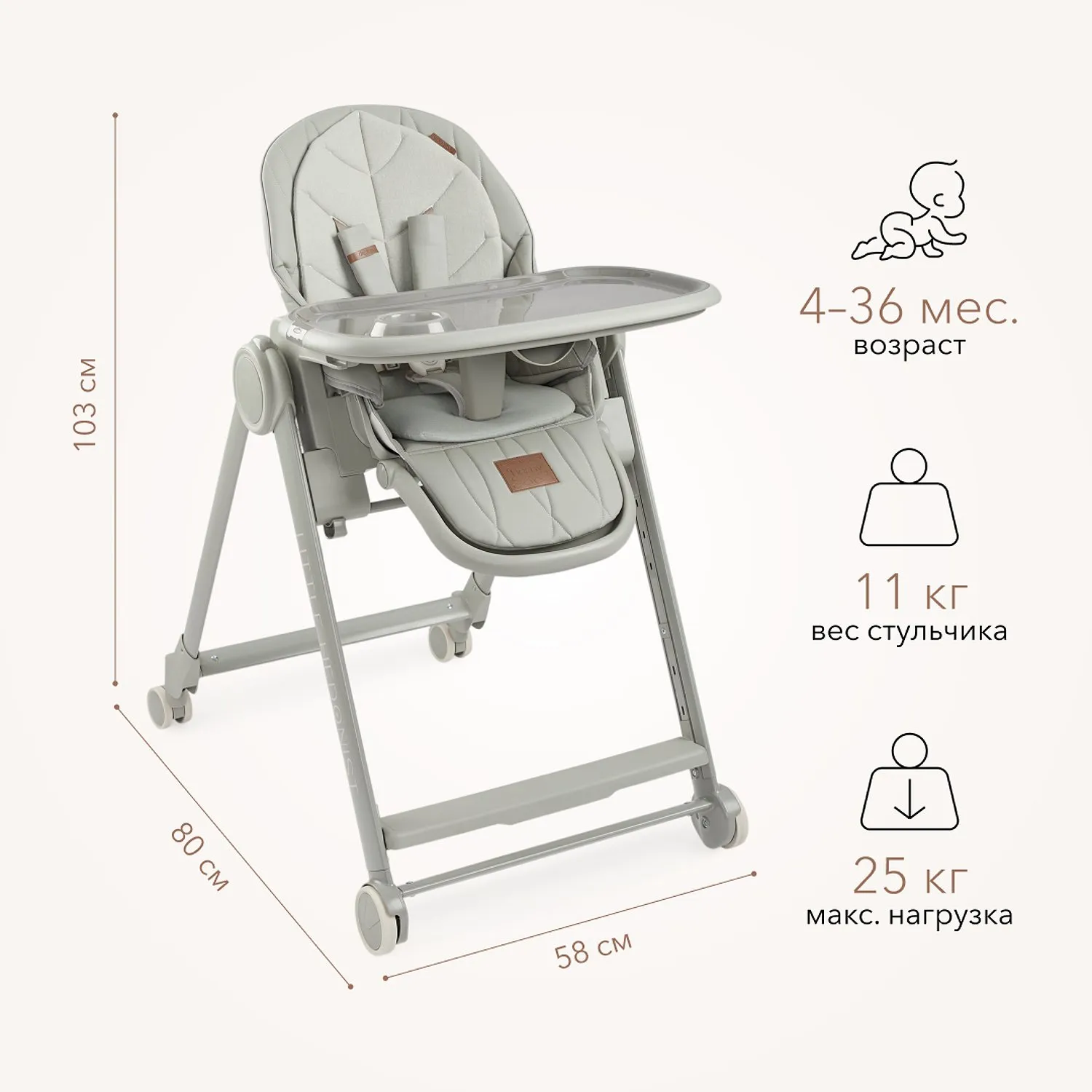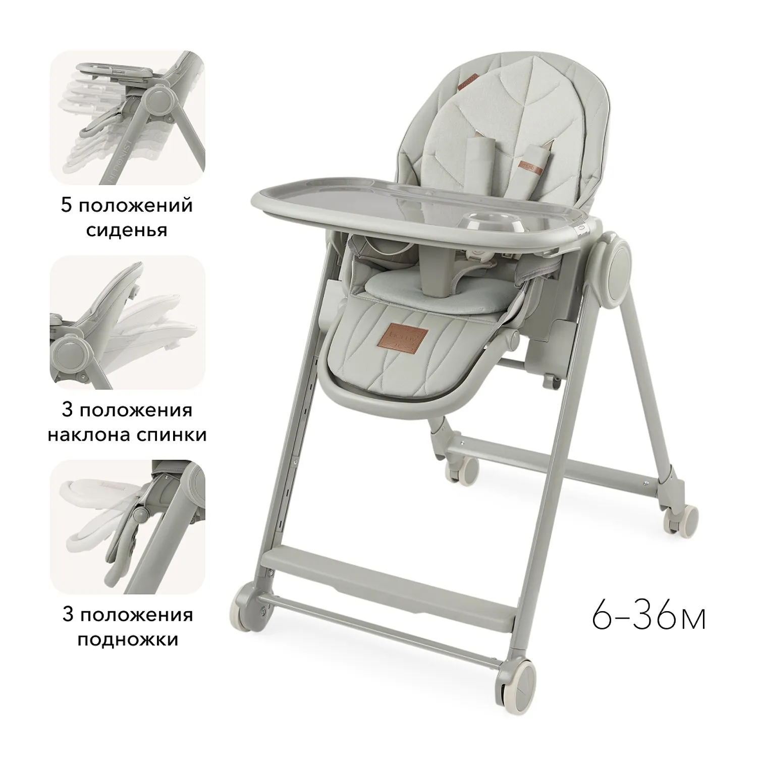 BERNY LUX — это продолжение линейки идеальных стульчиков для кормления серии BERNY. Практичный, удобный, стильный и развивающий -он регулируется по высоте сидения, подножки, ступенек и наклону спинки. Малышам будет комфортно в положении «шезлонг», а дети постарше сами заберутся в стульчик с помощью ступеньки. Цельнолитая металлическая рама без спаек и острых углов безопасна и выдерживает повышенную нагрузку до 25 кг. Задние поворотные колеса обеспечивают мобильность и оснащены тормозным механизмом, а передние – не поворачиваются, что добавляет стульчику устойчивости. Сидение из экокожи и мягкая вкладка из хлопка обеспечивают комфорт малышу. В карман на обратной стороне спинки можно положить игрушки или средства гигиены. BERNY LUX впишется в любой интерьер – лаконичный дизайн рамы и чехлов выполнен с учетом современных тенденций.