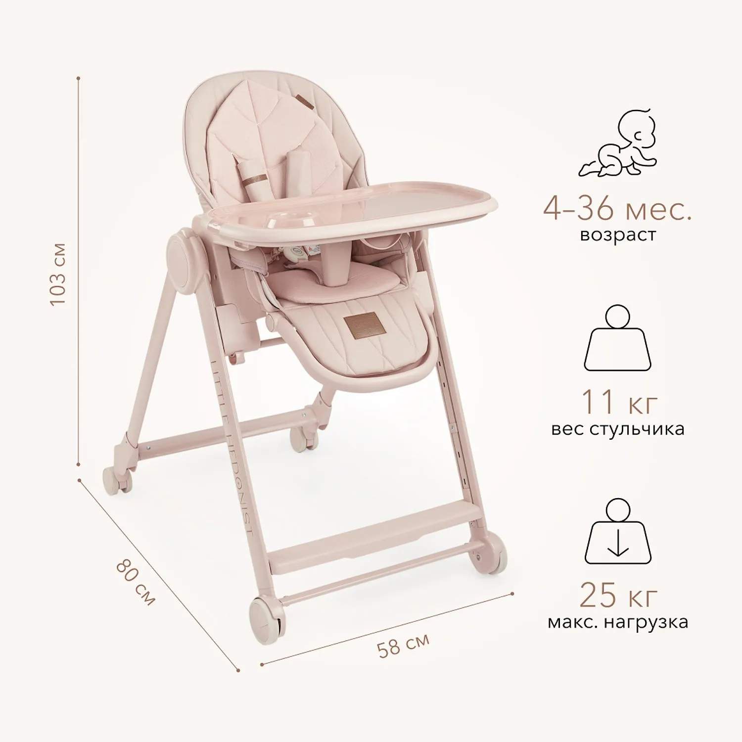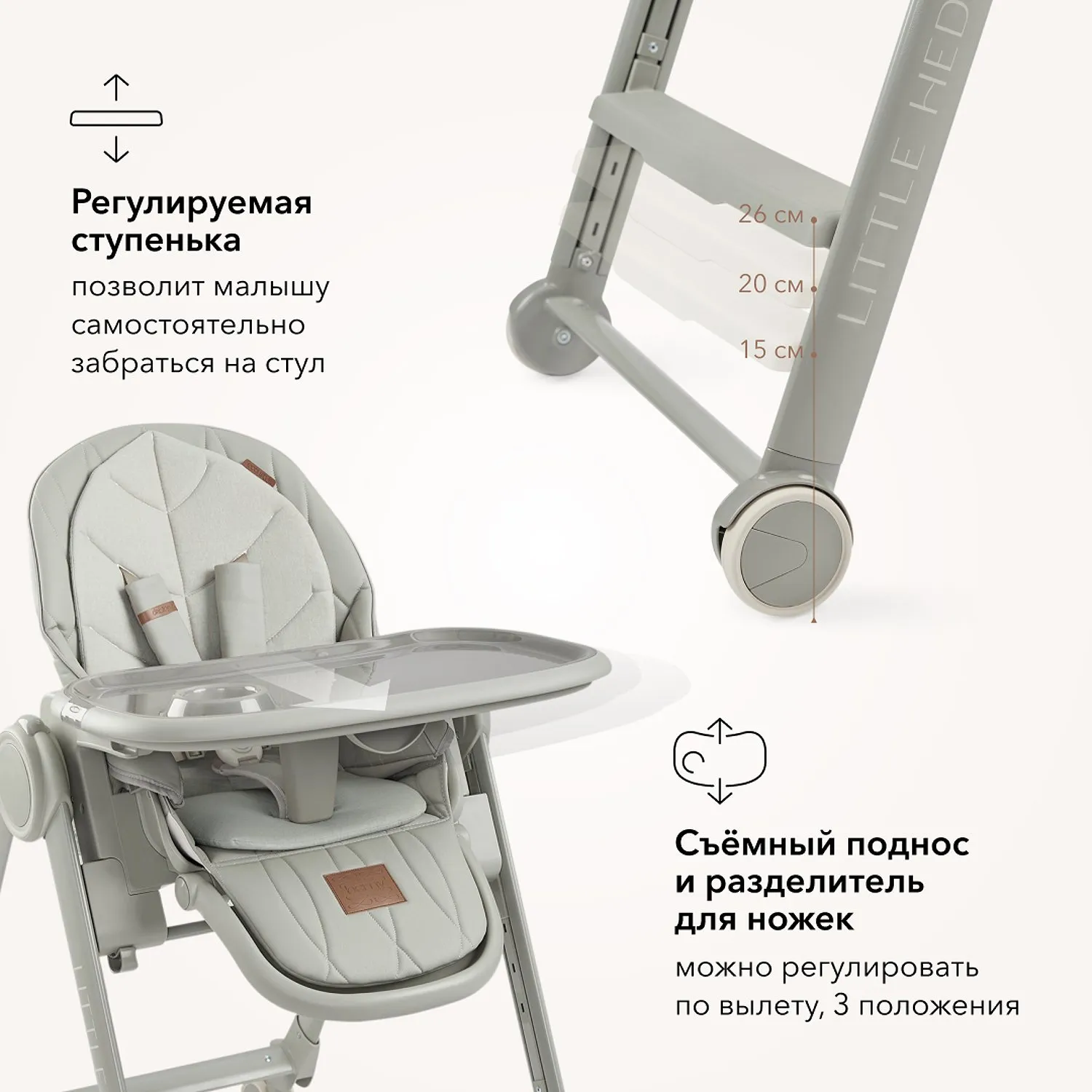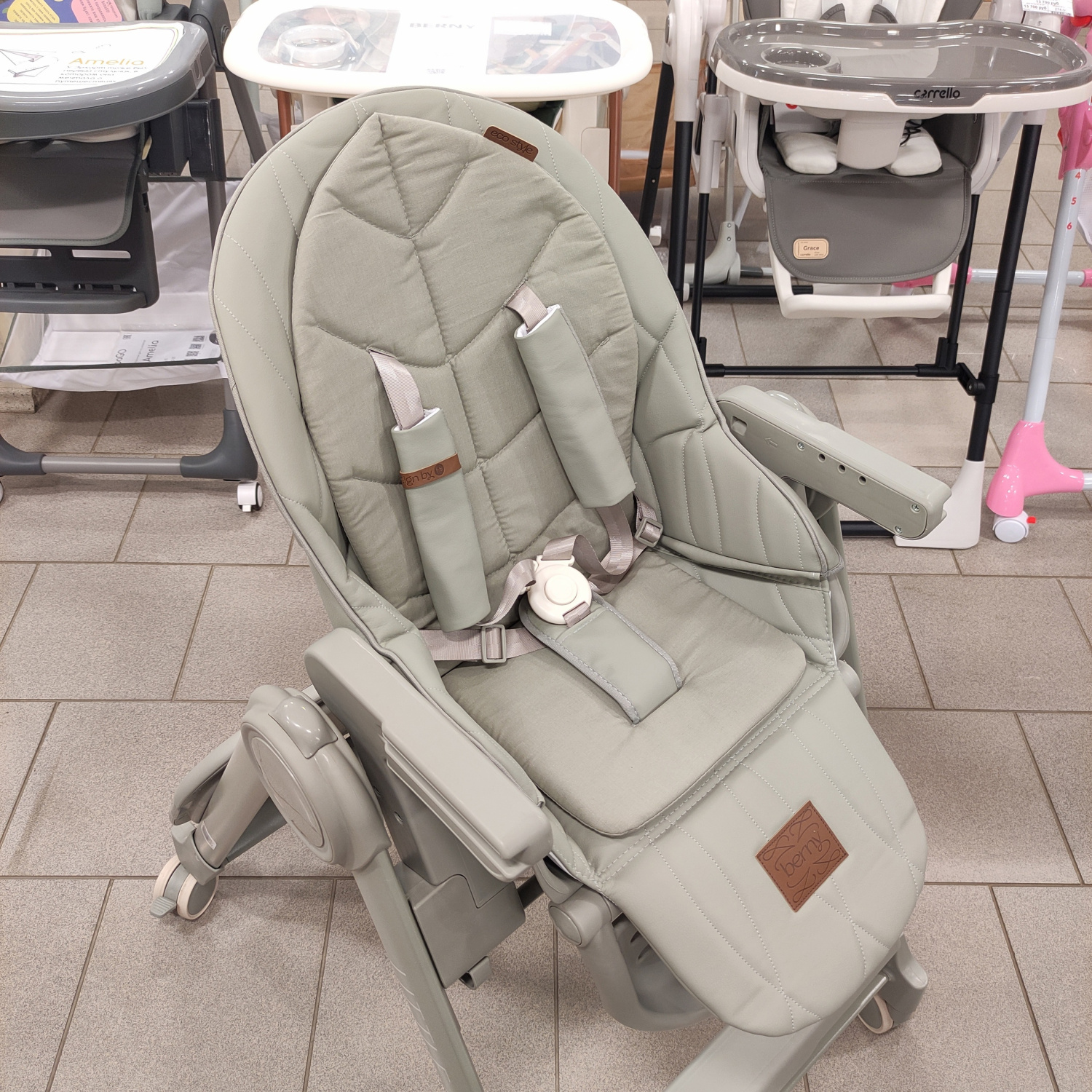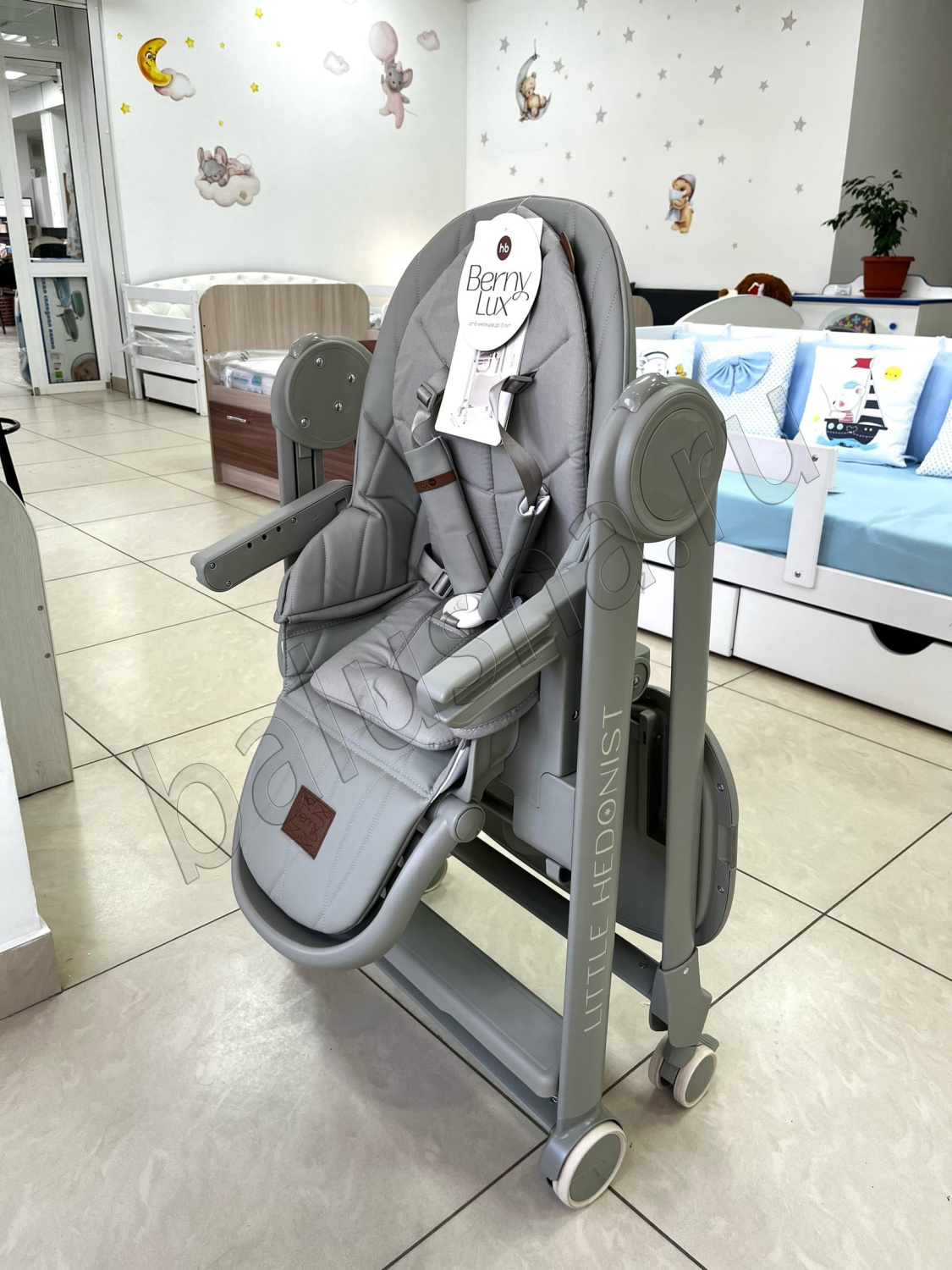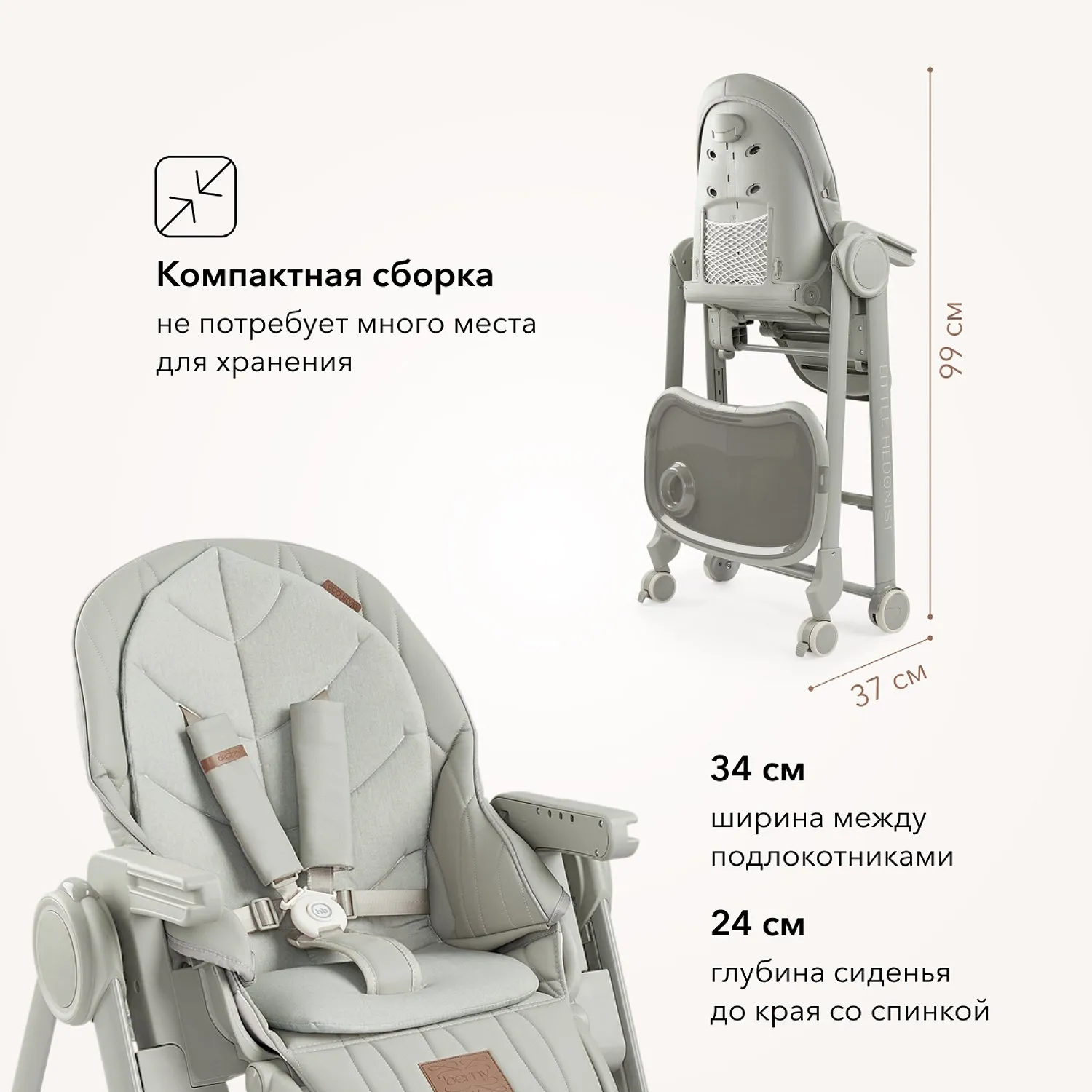 BERNY LUX — это продолжение линейки идеальных стульчиков для кормления серии BERNY. Практичный, удобный, стильный и развивающий -он регулируется по высоте сидения, подножки, ступенек и наклону спинки. Малышам будет комфортно в положении «шезлонг», а дети постарше сами заберутся в стульчик с помощью ступеньки. Цельнолитая металлическая рама без спаек и острых углов безопасна и выдерживает повышенную нагрузку до 25 кг. Задние поворотные колеса обеспечивают мобильность и оснащены тормозным механизмом, а передние – не поворачиваются, что добавляет стульчику устойчивости. Сидение из экокожи и мягкая вкладка из хлопка обеспечивают комфорт малышу. В карман на обратной стороне спинки можно положить игрушки или средства гигиены. BERNY LUX впишется в любой интерьер – лаконичный дизайн рамы и чехлов выполнен с учетом современных тенденций.