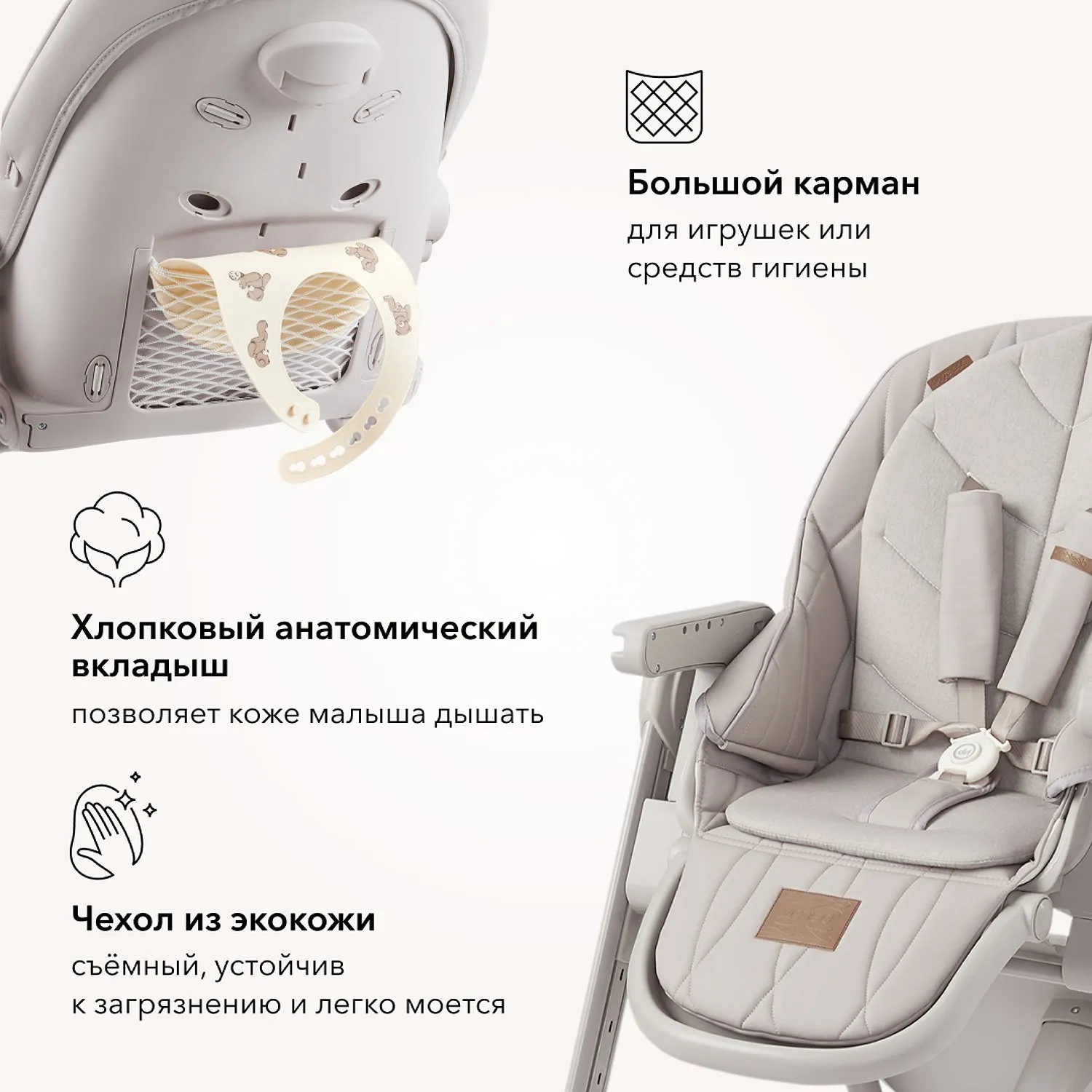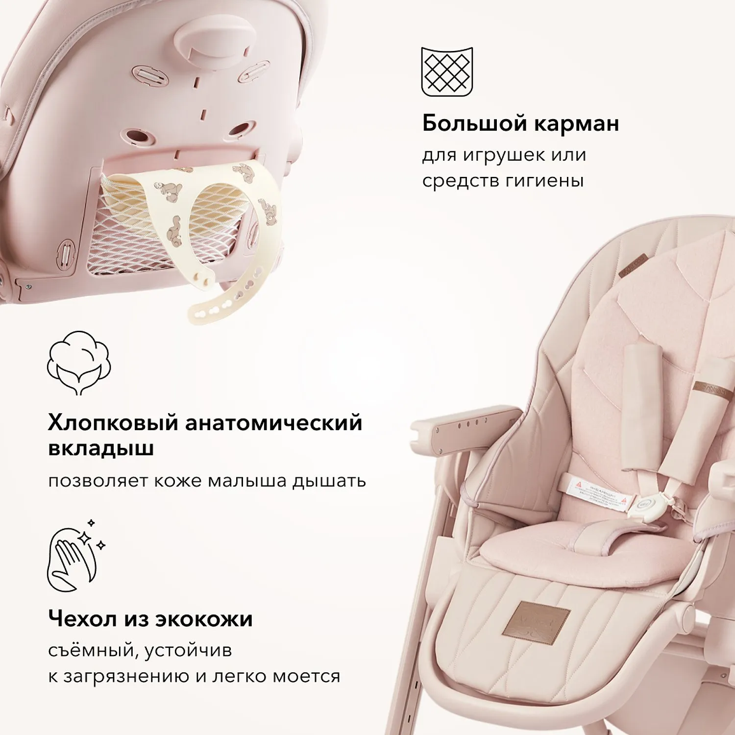 • Мягкая подкладка на сиденье и спинку из 100% хлопка