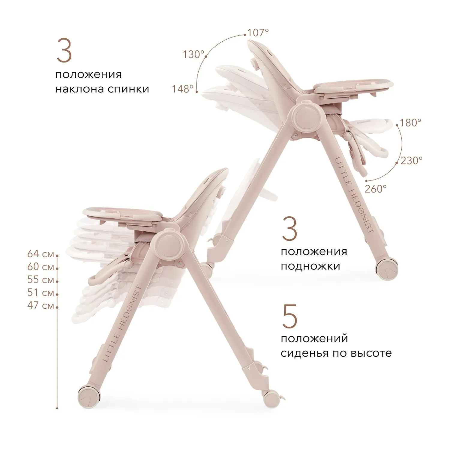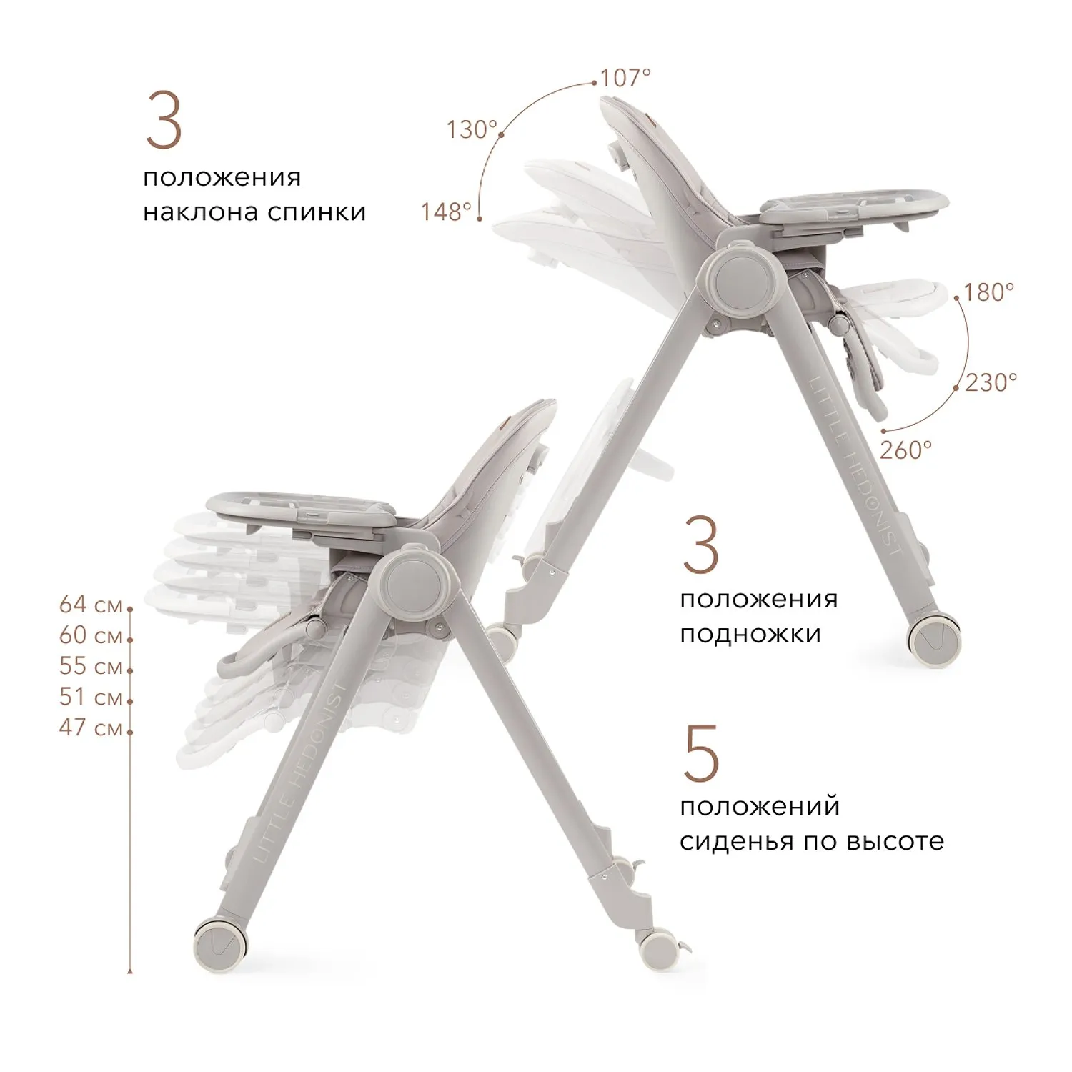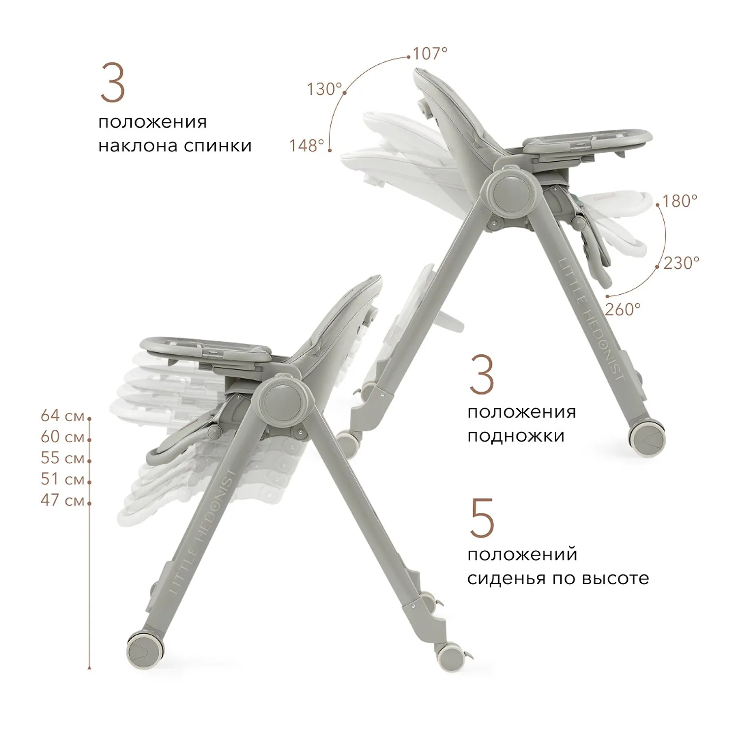 Число положений наклона спинки - 3 (107º, 130º, 148º)