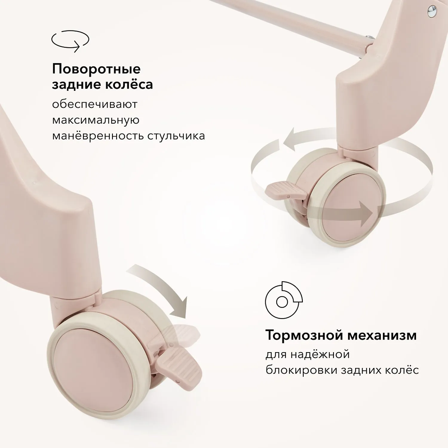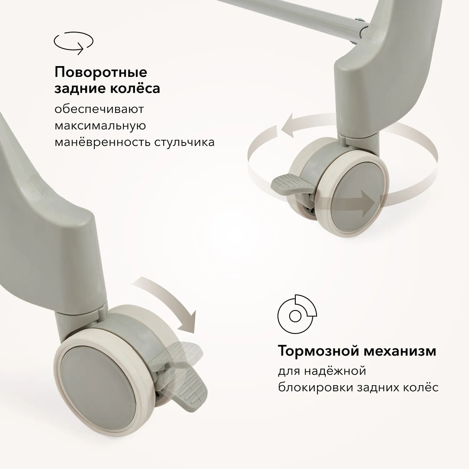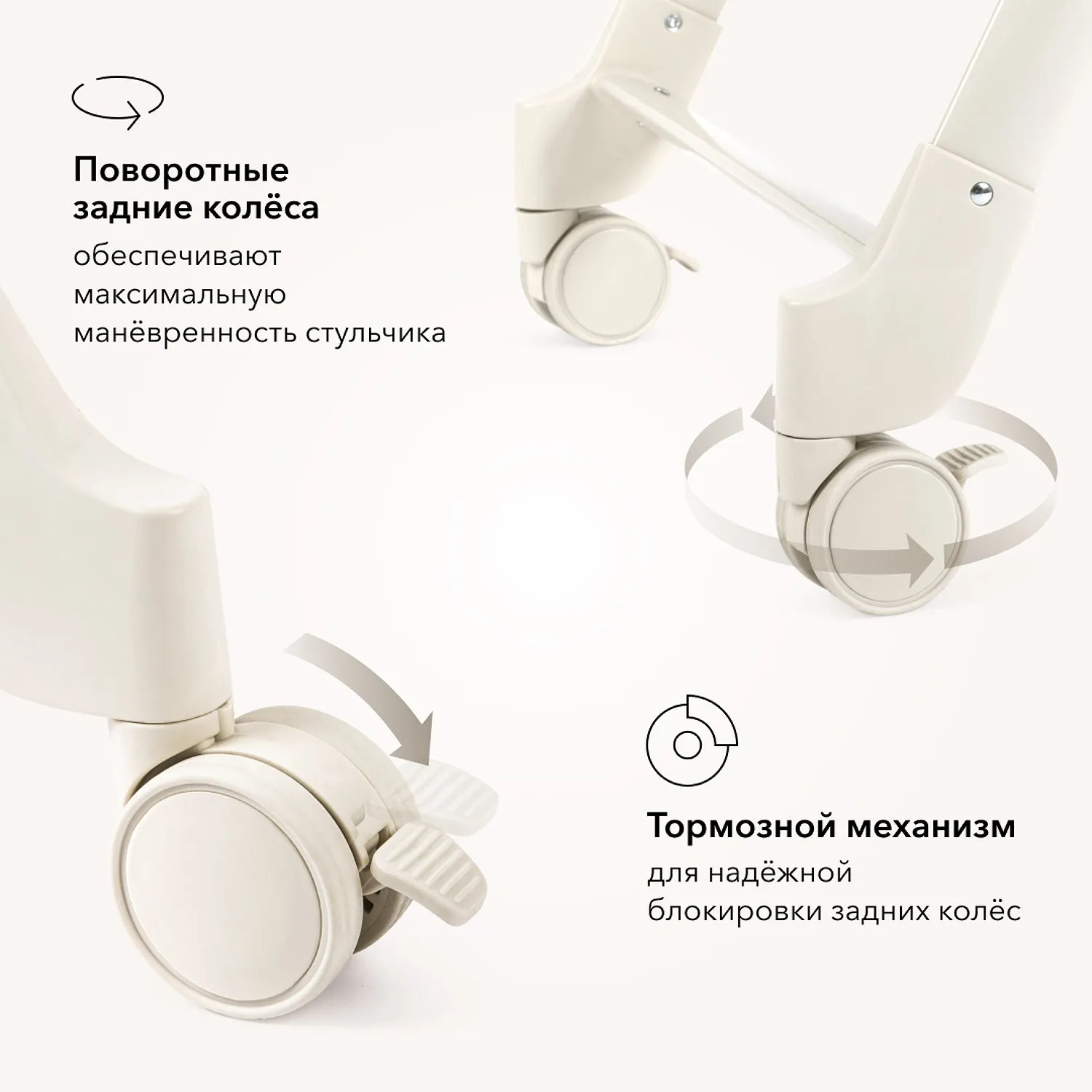 • Задние поворотные колёса добавляют маневренности