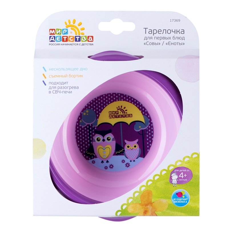 Яркие рисунки на тарелочке понравятся самым искушенным маленьким гурманам. Благодаря широким краям тарелочки малышу будет удобно учиться есть самостоятельно, а нескользящее дно обеспечит устойчивость блюда на столе.