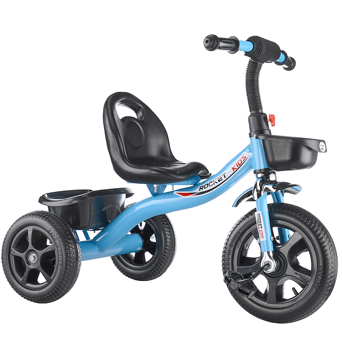 Колёса велосипеда сделаны из материала EVA — их нельзя проколоть и не нужно подкачивать. Сиденье с высокой спинкой сделает комфортными длительные прогулки, а в две корзины, расположенные спереди и сзади, можно сложить все необходимые игрушки для ребенка