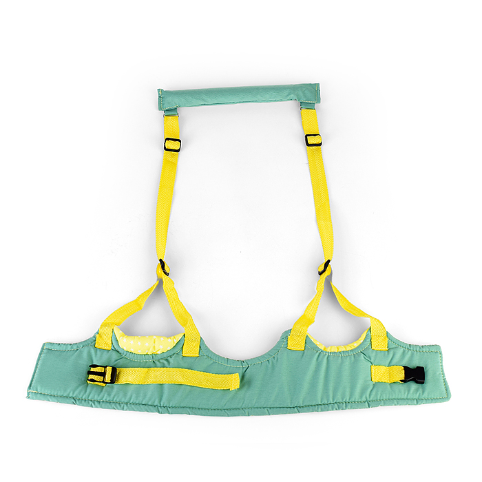 Ходунки крепятся на груди, в то время как взрослые удерживают ремень, направляя и охраняя движения деток